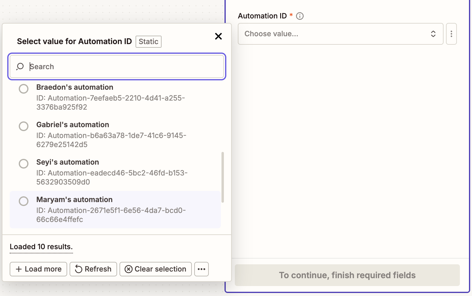 If your automation needs more than one piece of data from the external app, click to add additional fields.