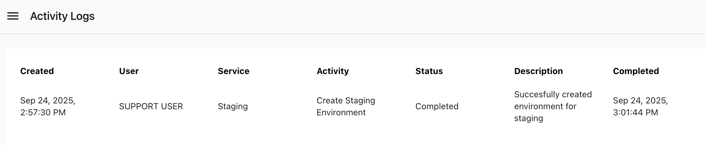 The Activity Logs feature in WordPress Hosting Pro helps users track actions performed on their staging site. It provides a record of significant activities, making it easier to monitor changes and troubleshoot issues.