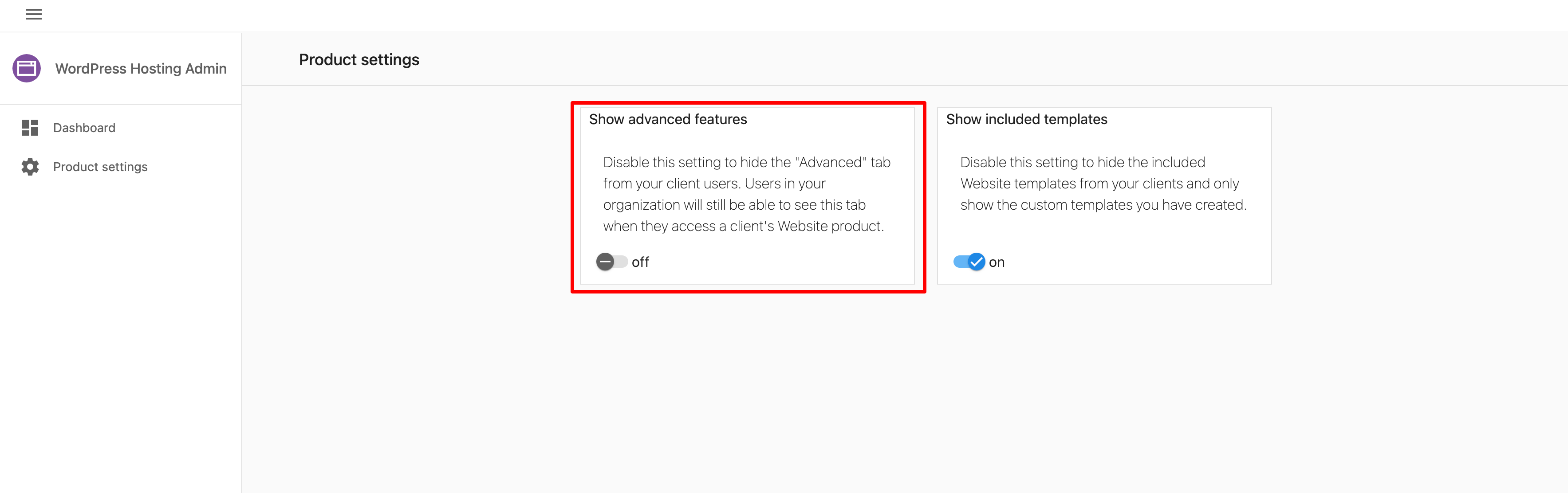 Partner admin users can remove the Advanced Tools tab from the WordPress Hosting dashboard for all client accounts.