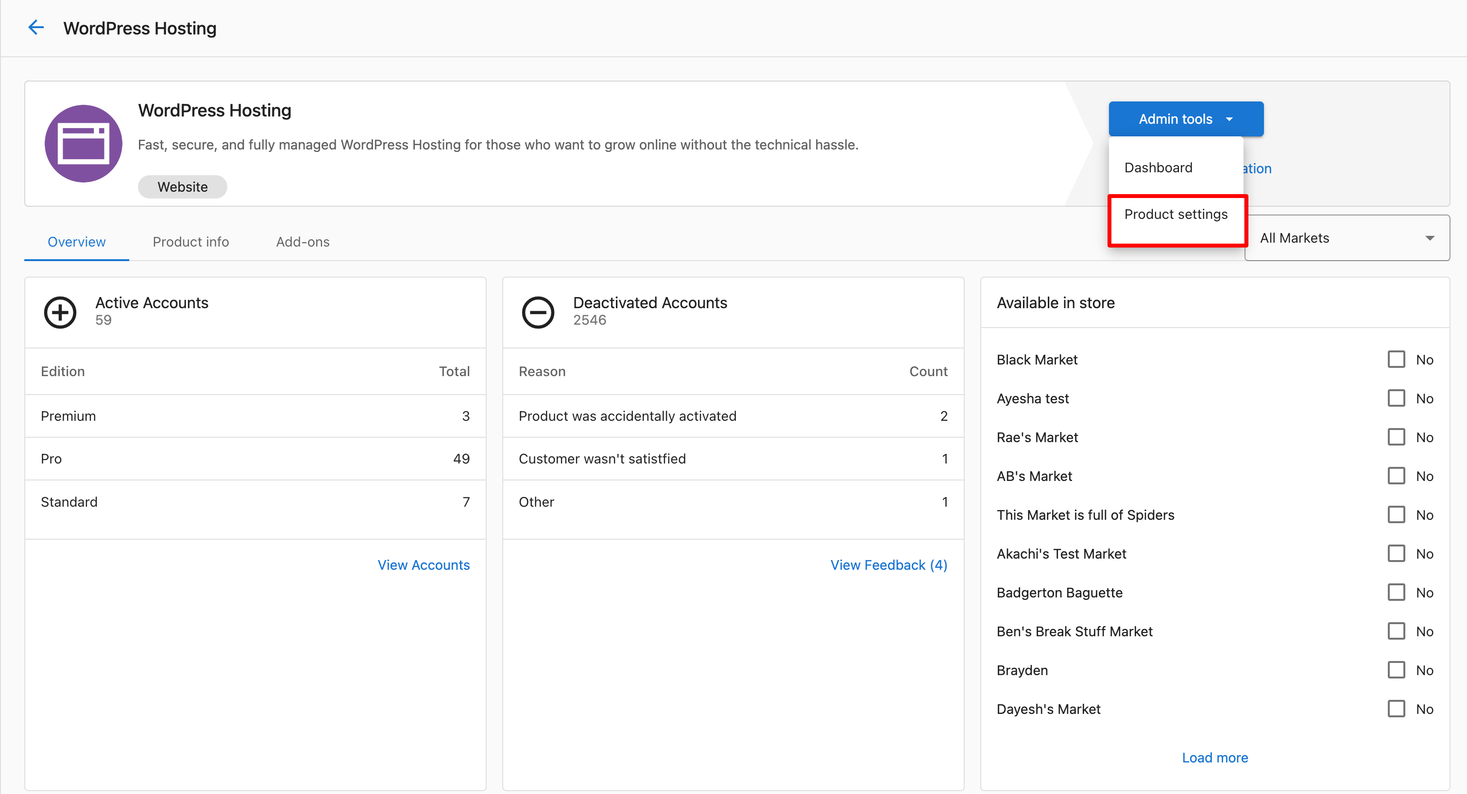 Go to Partner Center > Marketplace > Products > WordPress Hosting