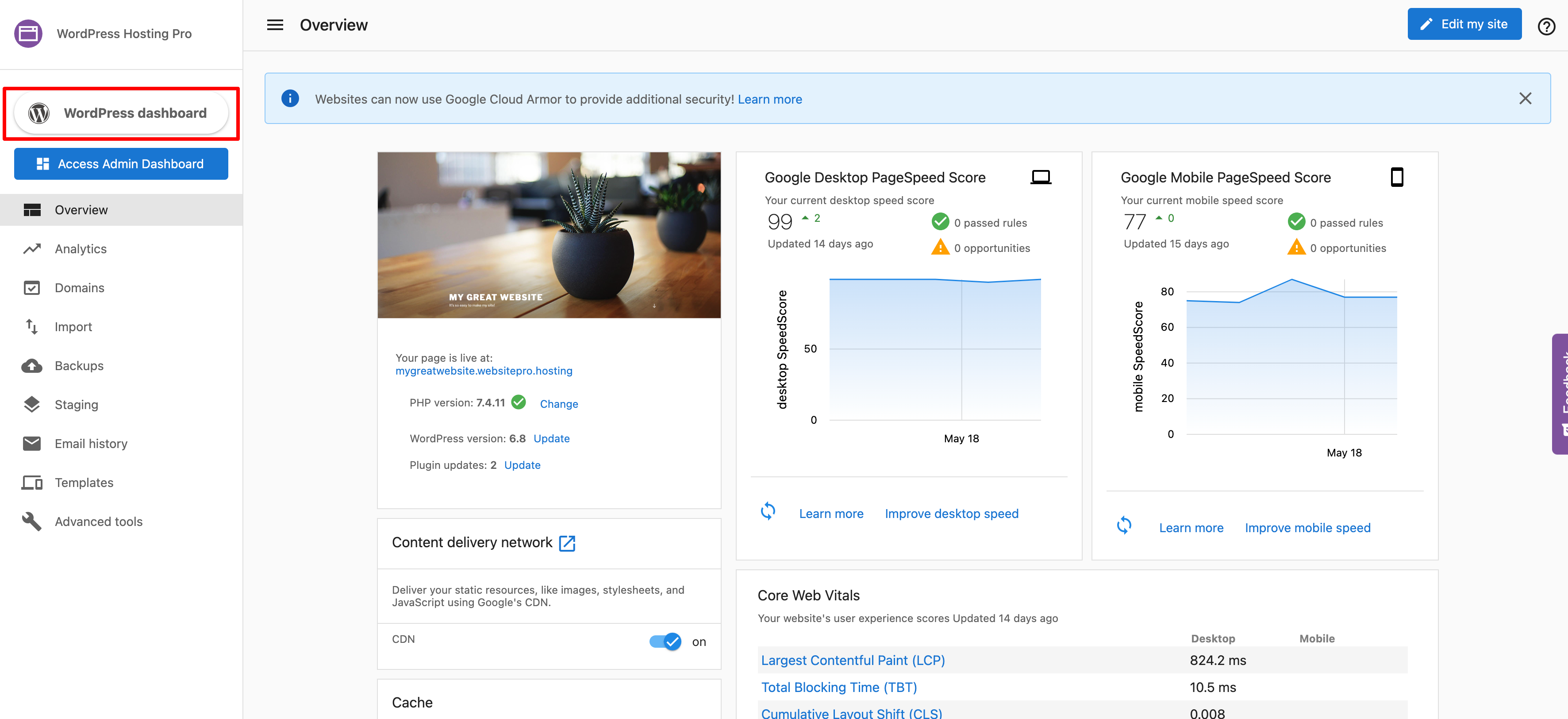 Accessing your WordPress Dashboard is handled securely through the WordPress Hosting Pro platform.