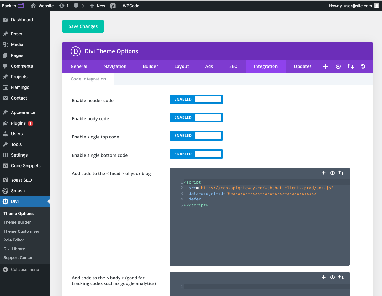 OPTION 2: To install using widget code on a WordPress site with Divi theme: