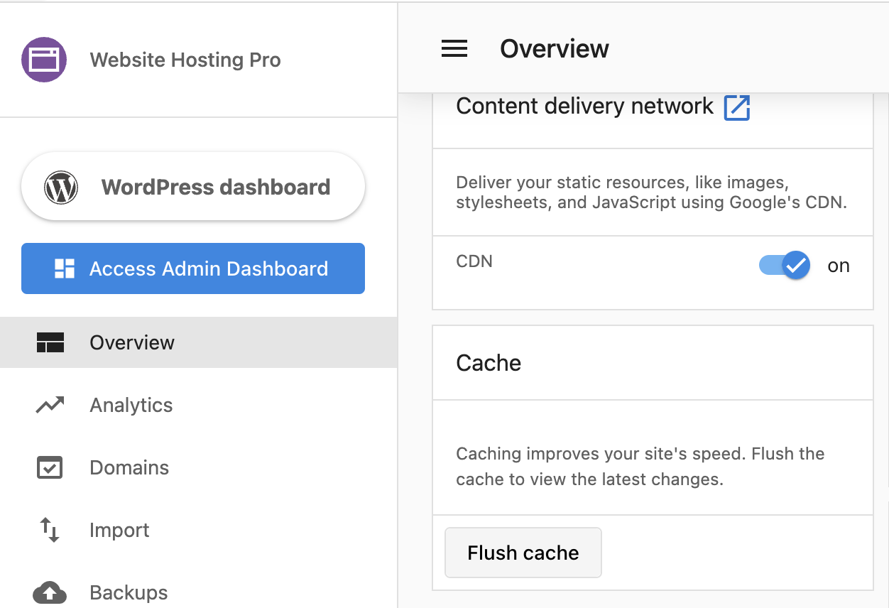Website hosting cache – clear the cache that the Website product manages, by clicking the ‘Flush Cache’ button on the Website overview page.