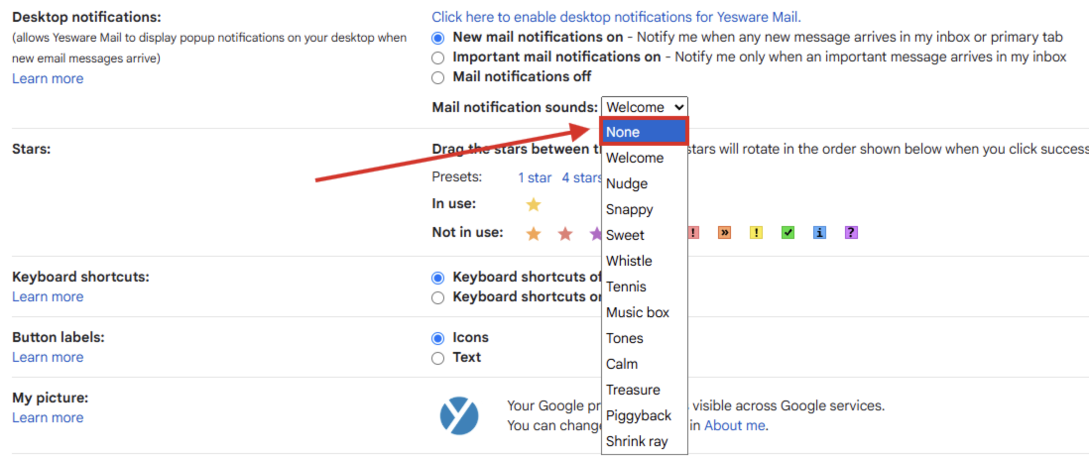 - Scroll down and click Save Changes. This will disable email notification sounds for a quieter workflow